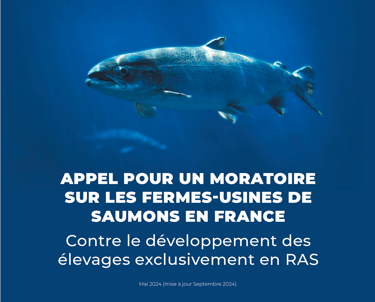 Appel pour un moratoire sur les fermes-usines de saumons en France.