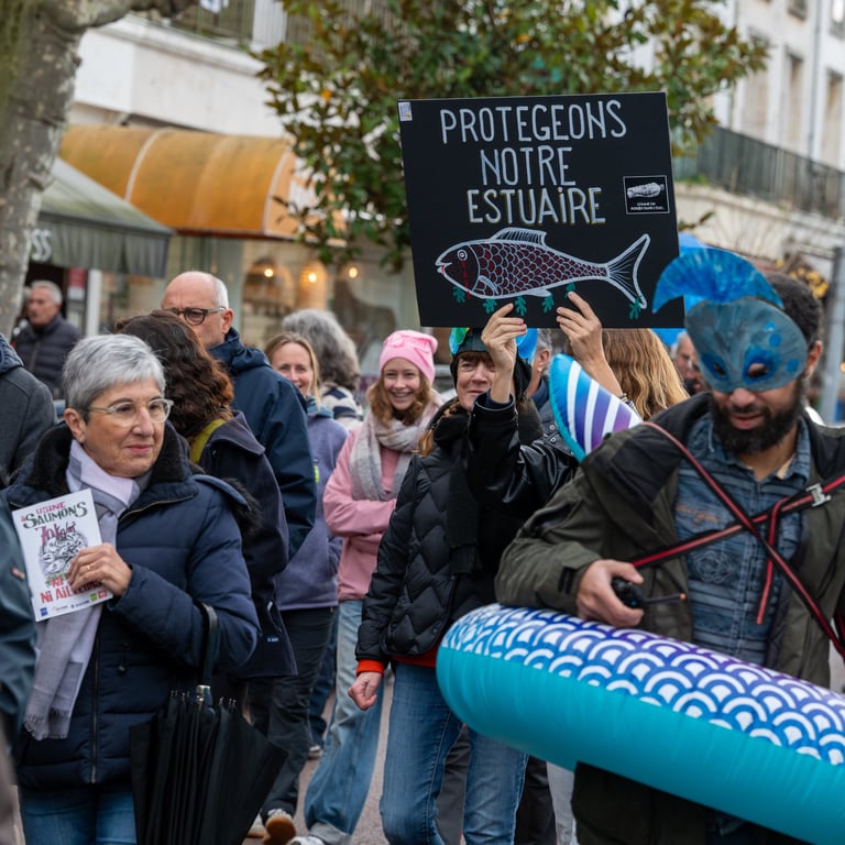 Ce samedi 29 septembre, les opposants au projet Pure Salmon se sont mobilisés des deux côtés de l'estuaire, à Royan et Soulac-sur-Mer, pour clamer leur désaccord avec le projet de ferme-usine aquacole au Verdon-sur-Mer.